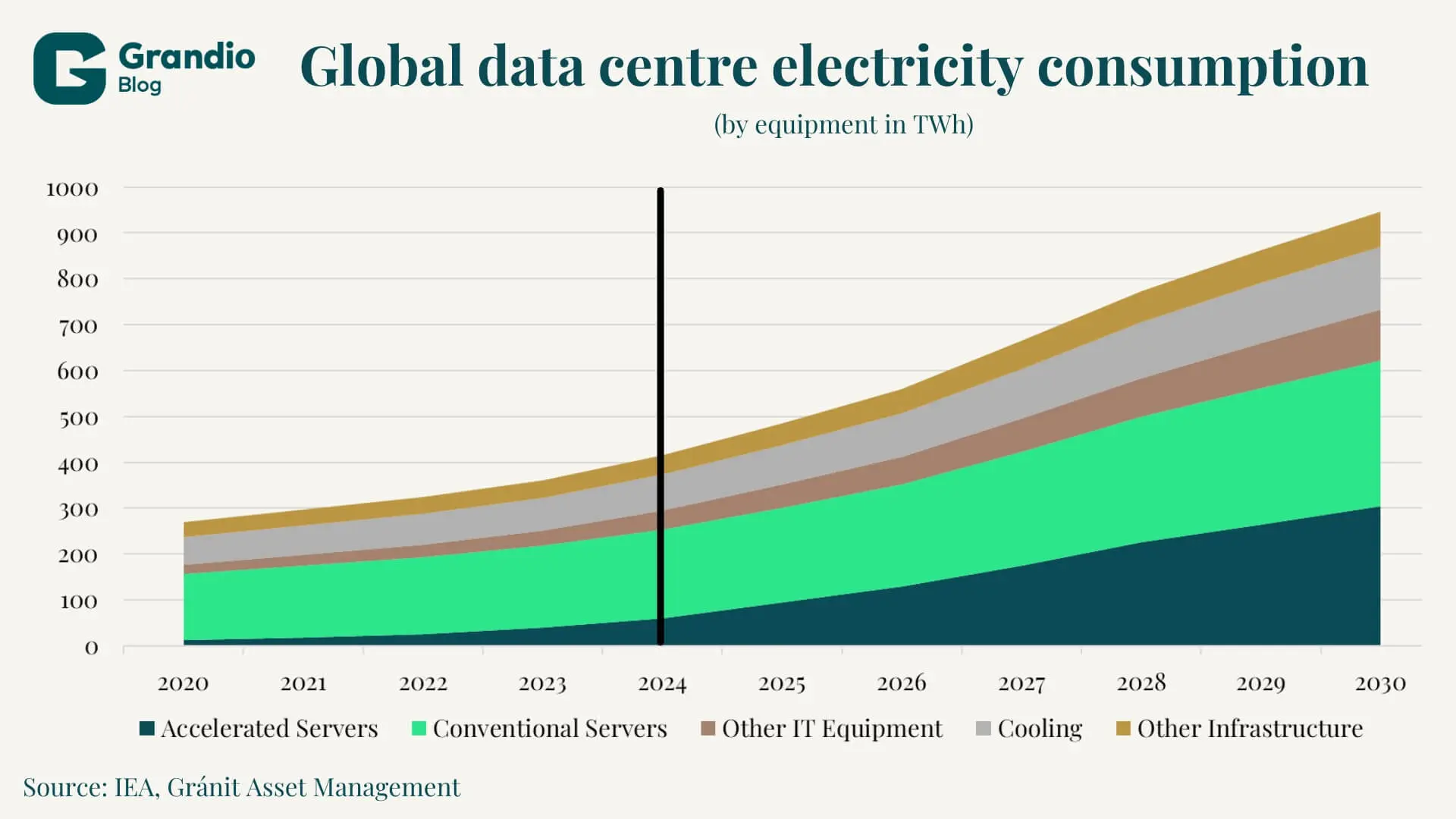 Industry analysts typically rely on exponential models when forecasting the capabilities of artificial intelligence and the associated energy demands. These projections suggest that computational demands—and thus energy consumption—will double at regular, increasingly shorter intervals. For example, according to an extrapolation by the RAND Corporation, the energy demand of global artificial intelligence data centres could require an additional 10 gigawatts (GW) of capacity by 2025, reach 68 GW by 2027, and rise to a staggering 327 GW by 2030. This would mean that the power demand of these centres in 2027 would equal the total generation capacity of the state of California in 2022, and by 2030, it could even match the generation of many developed countries.