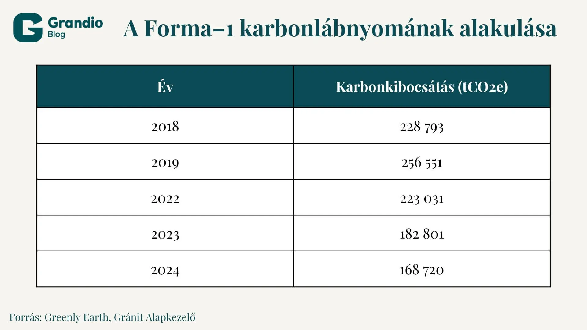 Ahogy azt a cikksorozat első részében már említettem, a Forma–1 2019-ben tette le a voksát amellett az ambiciózus cél mellett, hogy 2030-ra nettó zéró karbonkibocsátású sportággá váljon. Ezt a 2018-as bázisévhez viszonyított minimum 50 százalékos abszolút kibocsátáscsökkentéssel (Formula 1, Sustainability Strategy, 2019) és karbonsemlegességi kompenzációs programokkal kívánjak elérni. A legfrissebb fenntarthatósági jelentés szerint 2024 végére körülbelül féltávnál vannak, és 26 százalékos csökkenést értek el: a lábnyom 228 793 tCO2e-ről 168 720 tCO2e-re esett vissza (Formula 1 ESG update, 2025), még úgy is, hogy közben a versenynaptár 21-ről 24 futamra bővült. Becslések szerint a több verseny miatt önmagában 10 százalékkal nőtt volna az emisszió, a számok alapján tehát itt valódi pozitív változásról, nemcsak trükkös „zöldre festésről” (greenwashing) beszélhetünk. Fontos ugyanakkor, hogy ezekbe az értékekbe nem tartozik bele a szurkolók utazásához és elszállásolásához kapcsolódó kibocsátás, tehát az F1-nek bőven van még tennivalója, ha valóban komolyan gondolja a karbonsemlegességet.