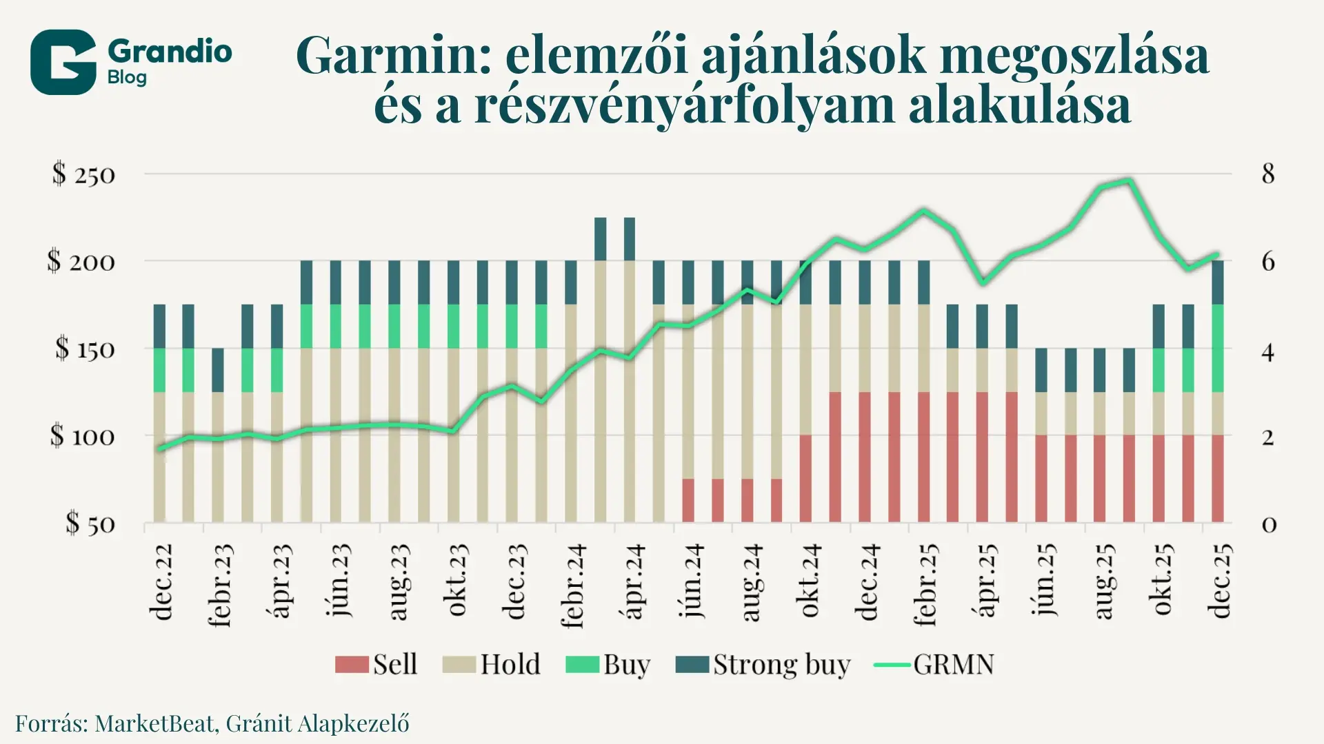 Ha az elmúlt három év árfolyamát nézzük, a Garmin részvénye 2022 és 2023 ősze között nagyjából 100 dollár körül oldalazott. Innen indult el az az erőteljes emelkedés, amelynek során az árfolyam 2025 őszére több mint duplázott, és egészen 260 dollár közelébe emelkedett.