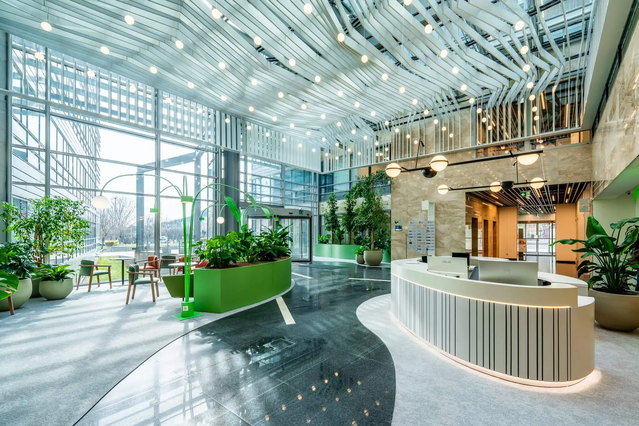 A műszaki fejlesztések eredményeként az irodaház energiahatékonysági besorolása kedvezőbb kategóriába lépett, visszaigazolva a korszerűsítések szakmai és fenntarthatósági eredményességét. A megújult közös terek reprezentatív, modern megjelenést biztosítanak, erősítve az irodaház presztízsét és hozzájárulva a minőségi munkavégzés feltételeihez.