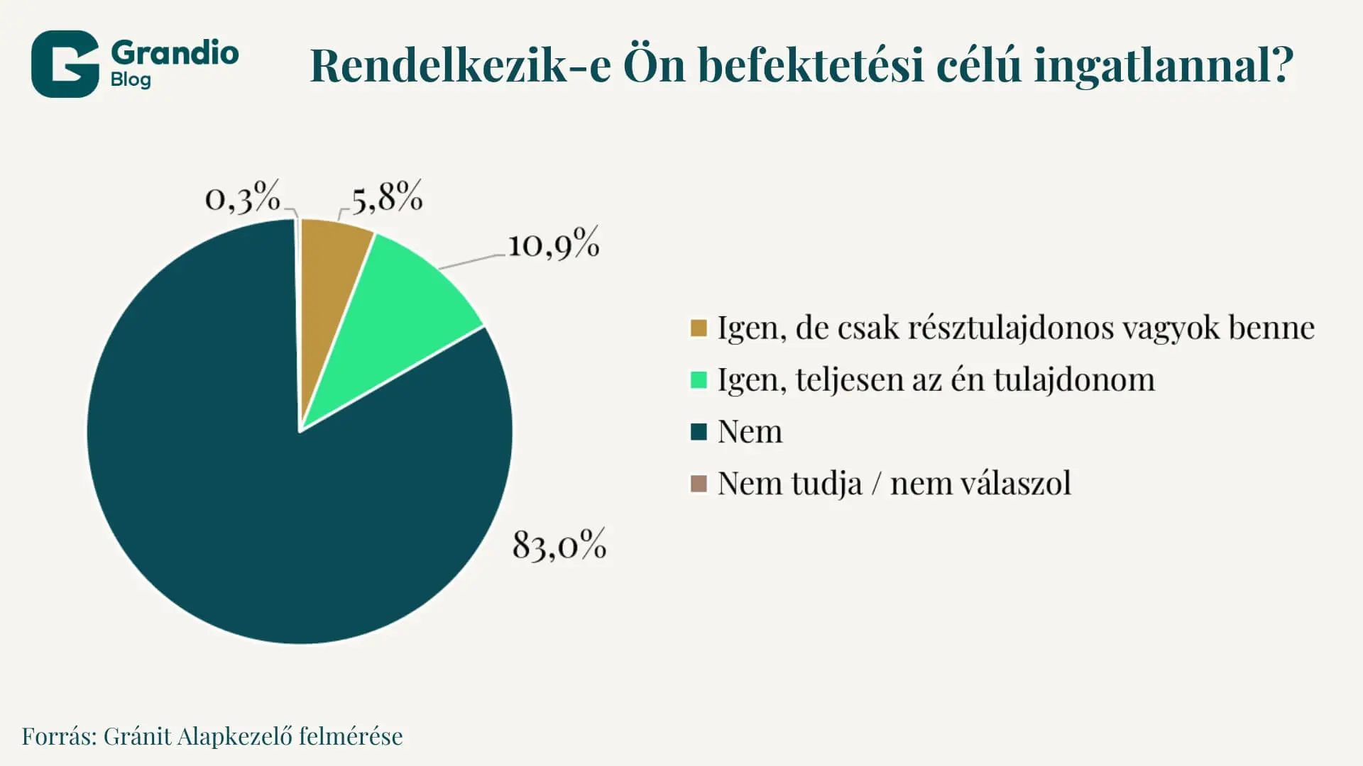 A magyar háztartások megtakarításai között viszonylag fontos szerepet játszanak az ingatlanbefektetések. 2025 novemberében a Gránit Alapkezelő felmérést készített a háztartások megtakarítási szokásairól. Kutatásunkban 1000 olyan háztartást kérdeztünk meg, amelyek rendelkeztek valamilyen megtakarítással. A válaszadók meglepően nagy aránya, 16,7 százaléka rendelkezik befektetési célú ingatlannal (ezen belül az ingatlan lehet részben vagy egészben az ő tulajdonukban). Ez az arány tavalyi felmérésünkben még csak 14,7 százalék volt, azaz bár nem szignifikáns, de növekedés történt az arányban.